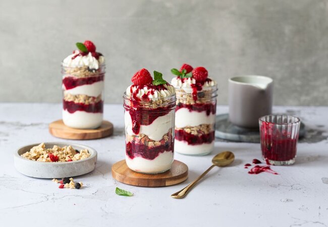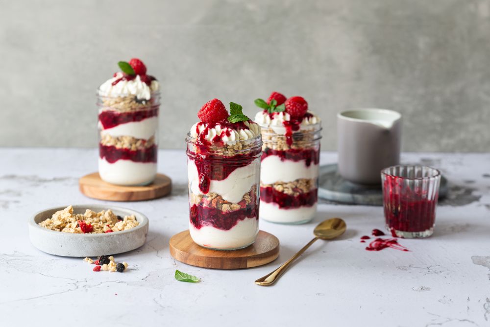 Beeriges Schichtdessert mit Hafer Crunchy Beere