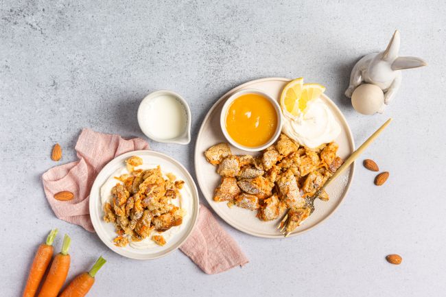 Wer mag, kann auch Apfelmus oder eine Kugel Vanilleeis zum Karotten-Nuss-Kaiserschmarrn servieren.