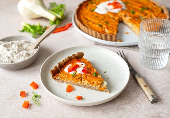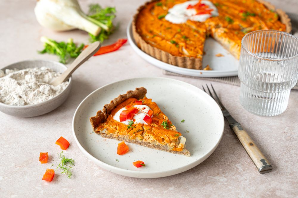 Fenchel Vollkorn Quiche mit Paprikacreme