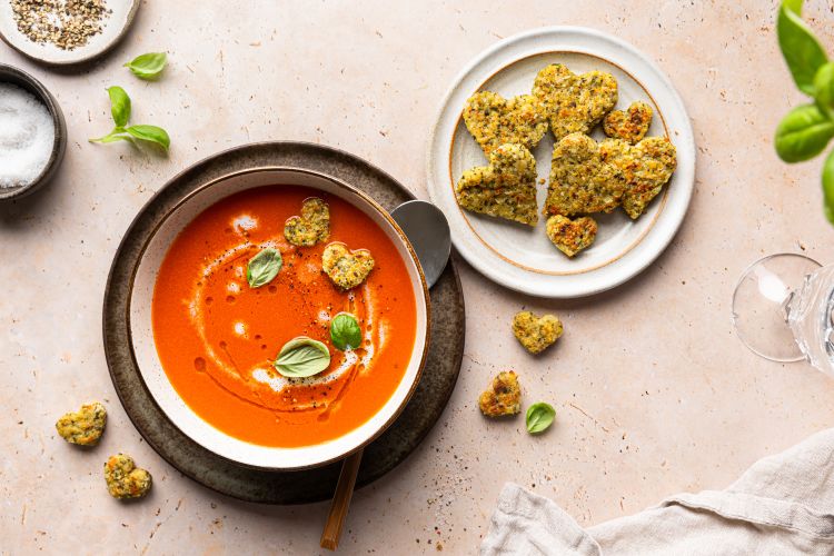 Gemüse-Nugget-Herzen mit Tomatensuppe
