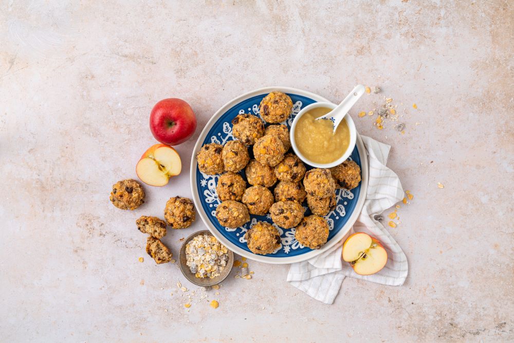 Müslibällchen mit Apfelmus und Zimt