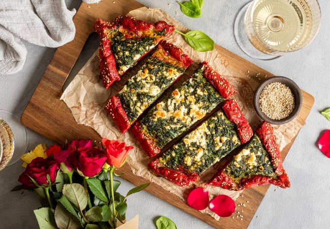 Pinke Spinat-Schafskäse-Pinsa