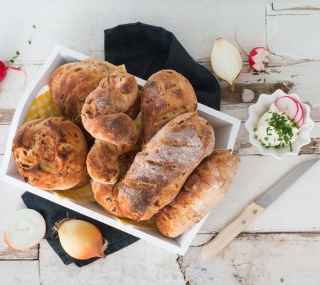 Tipp: Schmeckt mit Butter oder Frischkäse bestrichen und mit Schnittlauch und knackigem Gemüse belegt. Die Brötchen eignen sich auch perfekt als deftige Beilage beim Grillen.