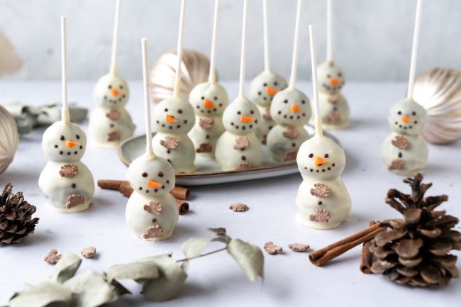 Schneemann Cake Pops mit Brownie Füllung
