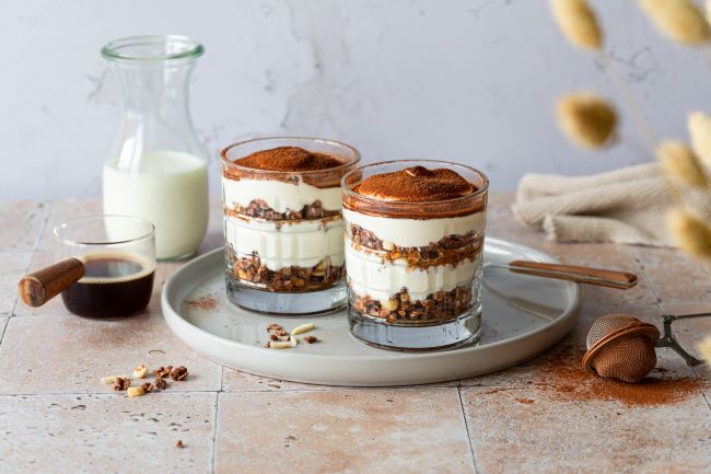 Schnelles Tiramisu im Glas mit Hafer Crunchy Schoko Nuss