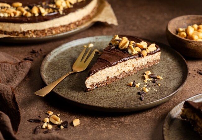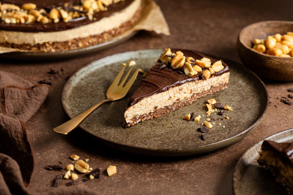 Schoko-Erdnusscheesecake mit Müsliboden (No-Bake)