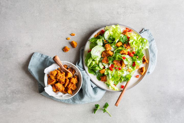 Süßkartoffel-Falafel-Croûtons als Salattopping