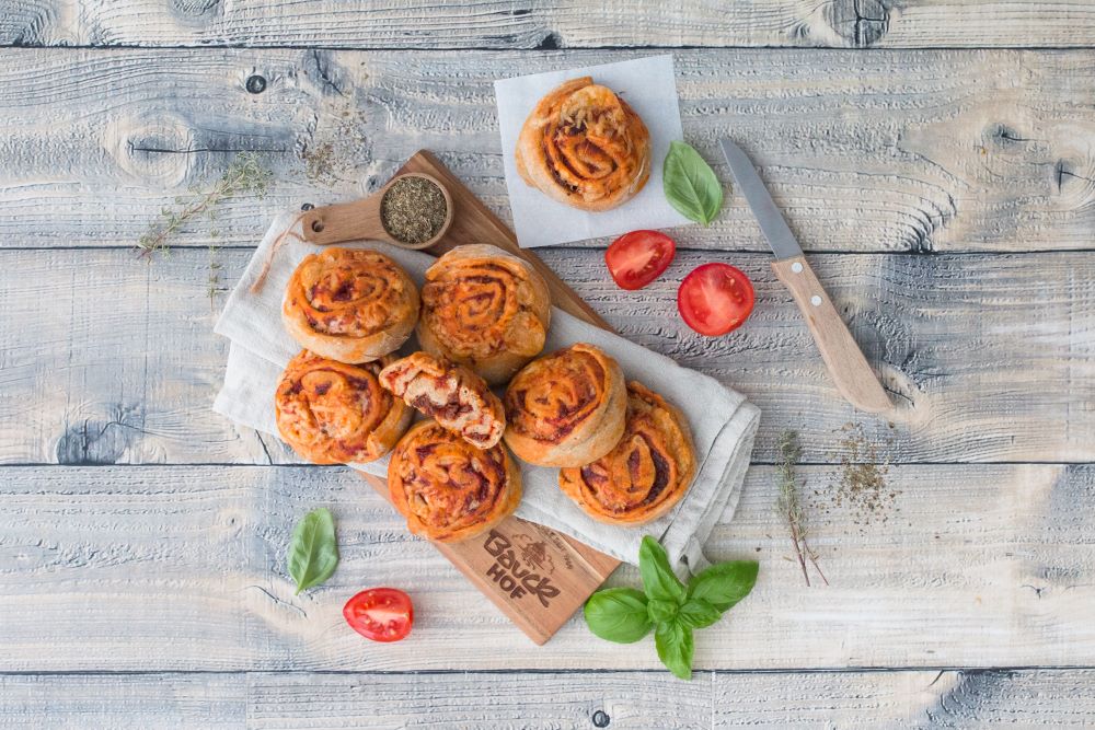 Varianten: Mit glutenfreien Pizzateig von Bauck sind die Pizzaschnecken sogar glutenfrei.