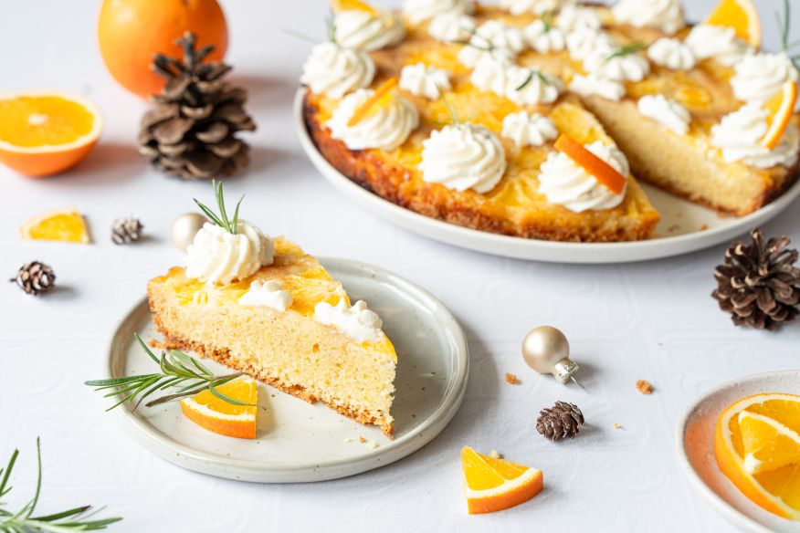 Upside Down Orangenkuchen mit Rosmarin-Vanillesahne