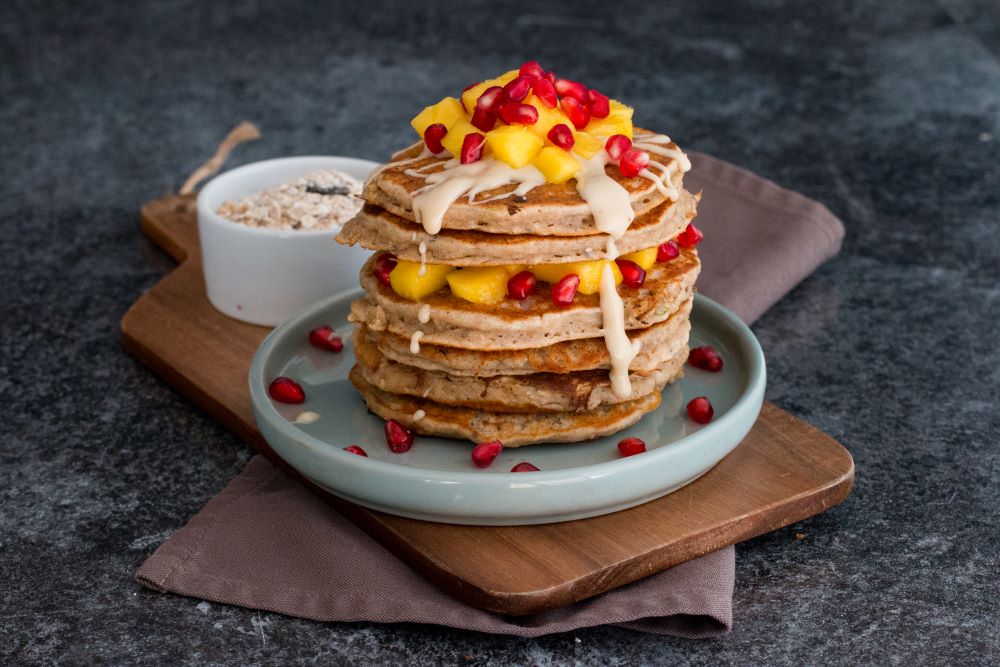 Vegane Hot Hafer Pancakes mit Mango